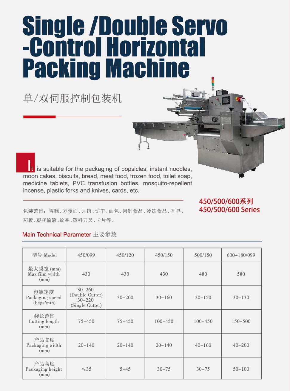 單/雙伺服控制包裝機(jī)450/500/600系列